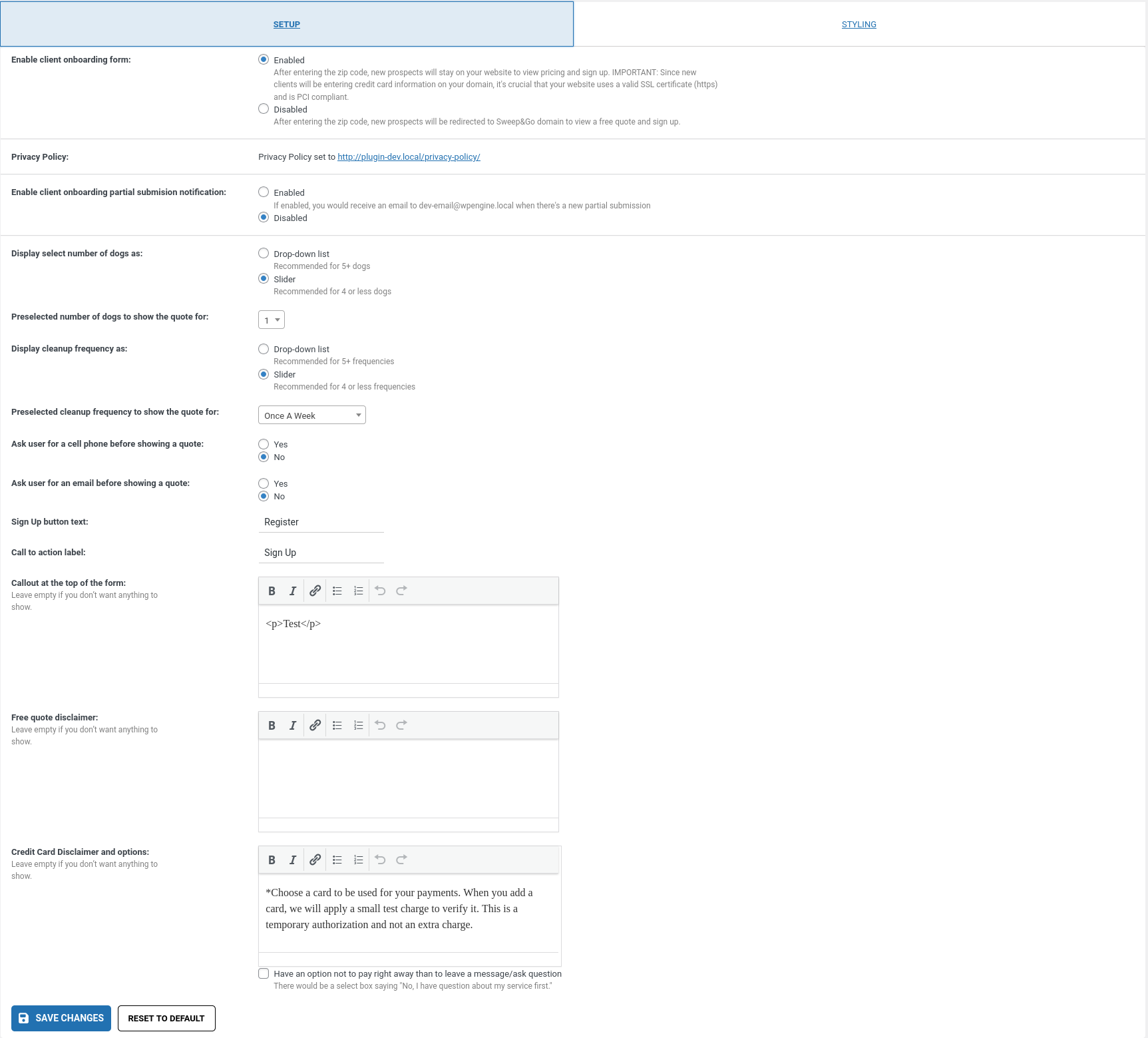 - Disabled: New prospects will be redirected to Sweep&Go’s domain to view a free quote and sign up.