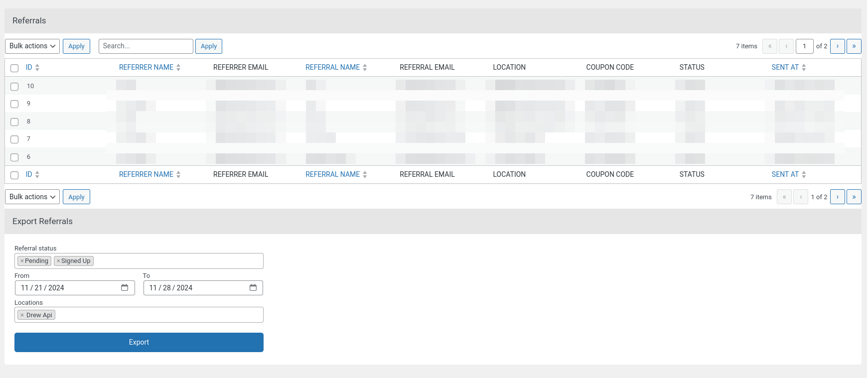 Under the referral entries table, you'll find the section to export all of your referrals into Excel format (.xlsx)