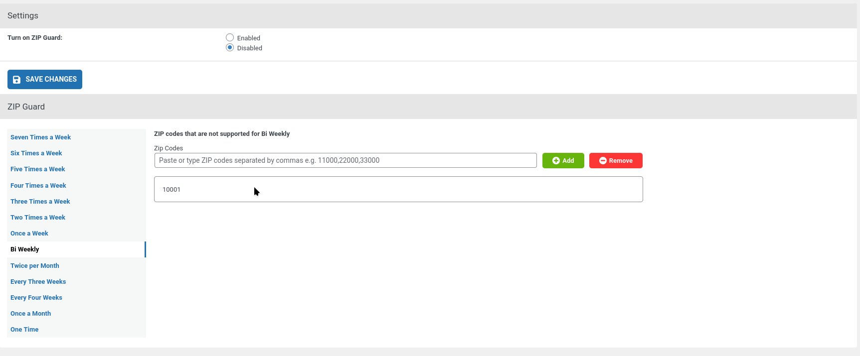 - If no zip codes are entered for a specific frequency, it will be available to all locations.